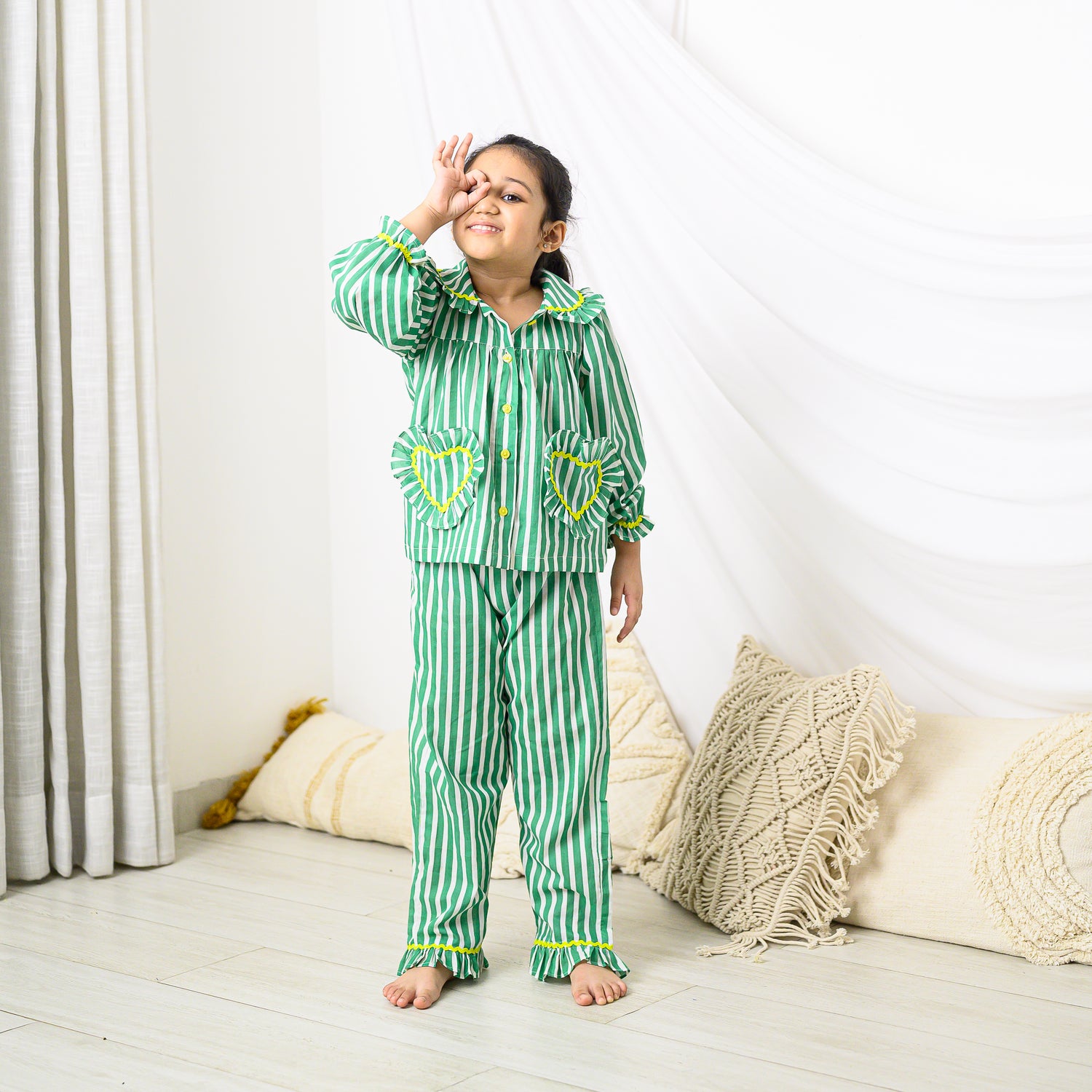 Green Stripes Night Suit with Pants